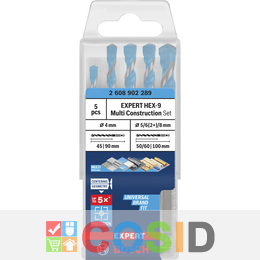 BOSCH Set de burghie EXPERT HEX-9 Multi Construction, 4 x 45 90; 5 x 50 x 100; 6 x 60 x 100; 6 x 60 x 100; 8 x 50 x 100 mm, 5 buc.
