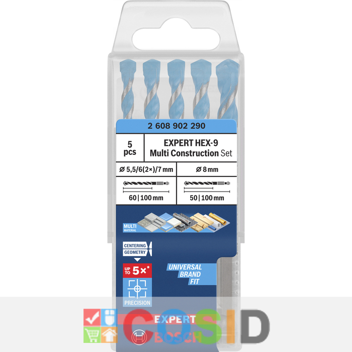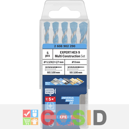 BOSCH Set de burghie EXPERT HEX-9 Multi Construction, 5.5 x 60 x 100; 6 x 60 x 100; 6 x 60 x 100; 7 x 60 x 100; 8 x 50 x 100 mm, 5 buc.