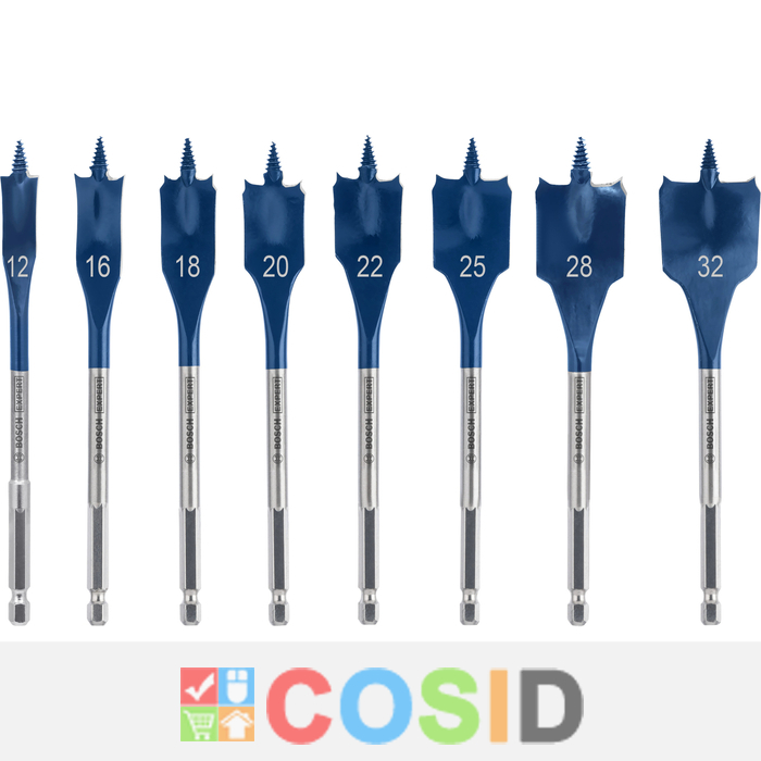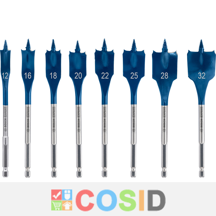 BOSCH Set de burghie plate EXPERT Self Cut Speed, 12/16/18/20/22/25/28/32 mm, 8 buc.