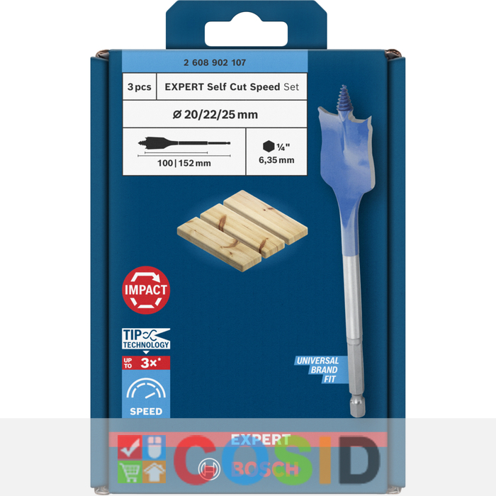 BOSCH Set de burghie plate EXPERT Self Cut Speed, 20/22/25 mm, 3 buc.