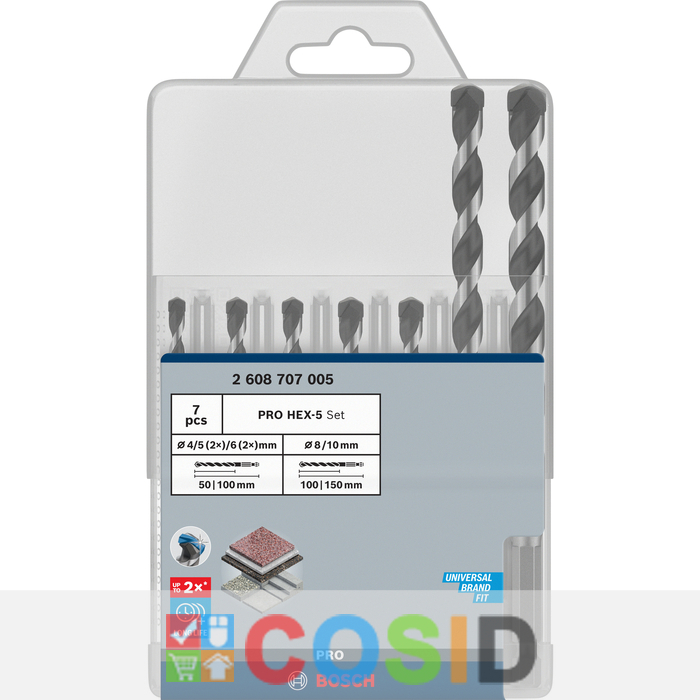 BOSCH Set de burghie PRO HEX-5, 4x100, 5x100, 5x100, 6x100, 6x100, 8x150, 10x150 mm, 7 buc.