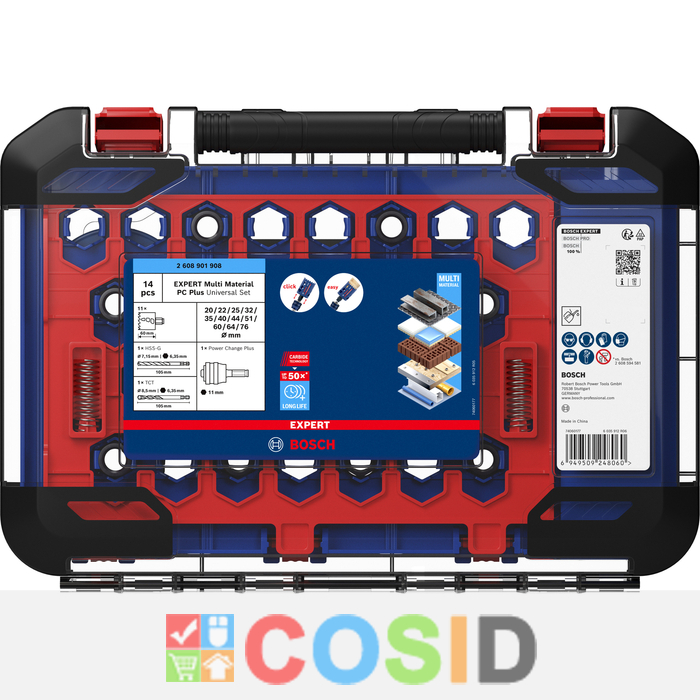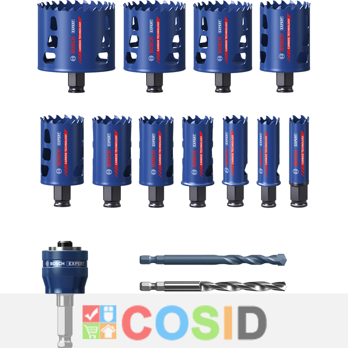 BOSCH Set de carote EXPERT Multi Material Power Change Plus, 20; 22; 25; 32; 35; 40; 44; 51; 60; 64; 76 x 60 mm, 14 buc.