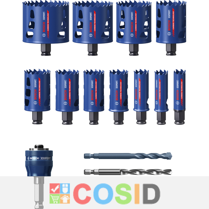 BOSCH Set de carote EXPERT Multi Material Power Change Plus, 20; 22; 25; 32; 35; 40; 44; 51; 60; 68; 76 x 60 mm, 14 buc.
