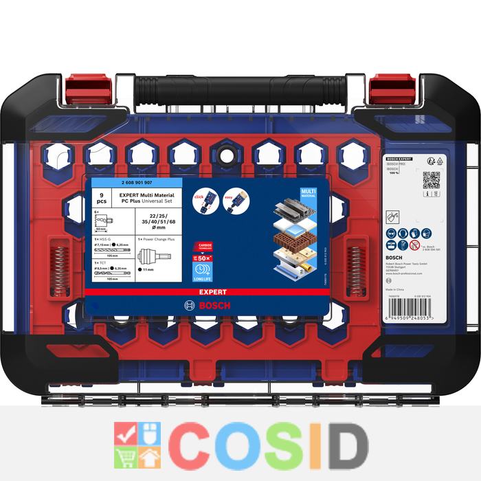BOSCH Set de carote EXPERT Multi Material Power Change Plus, 22; 25; 35; 40; 51; 68 x 60 mm, 9 buc.