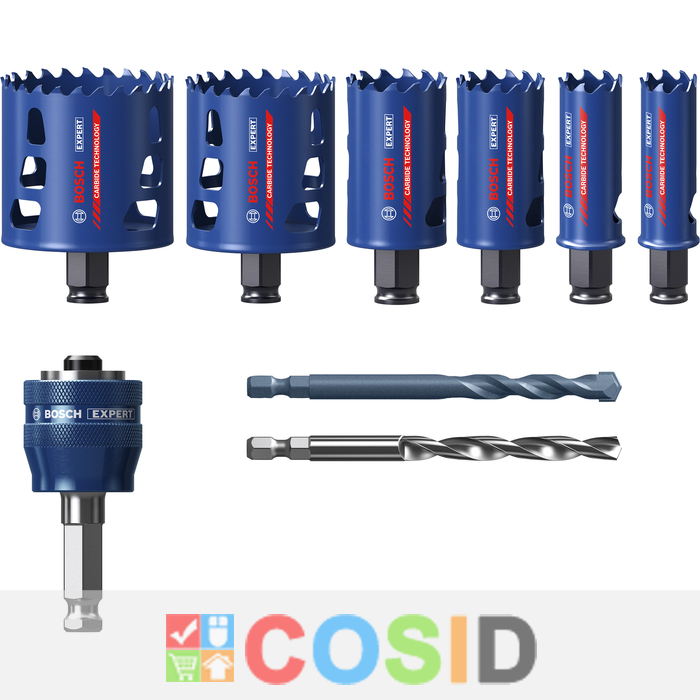BOSCH Set de carote EXPERT Multi Material Power Change Plus, 22; 25; 35; 51; 60; 68 x 60 mm, 9 buc.