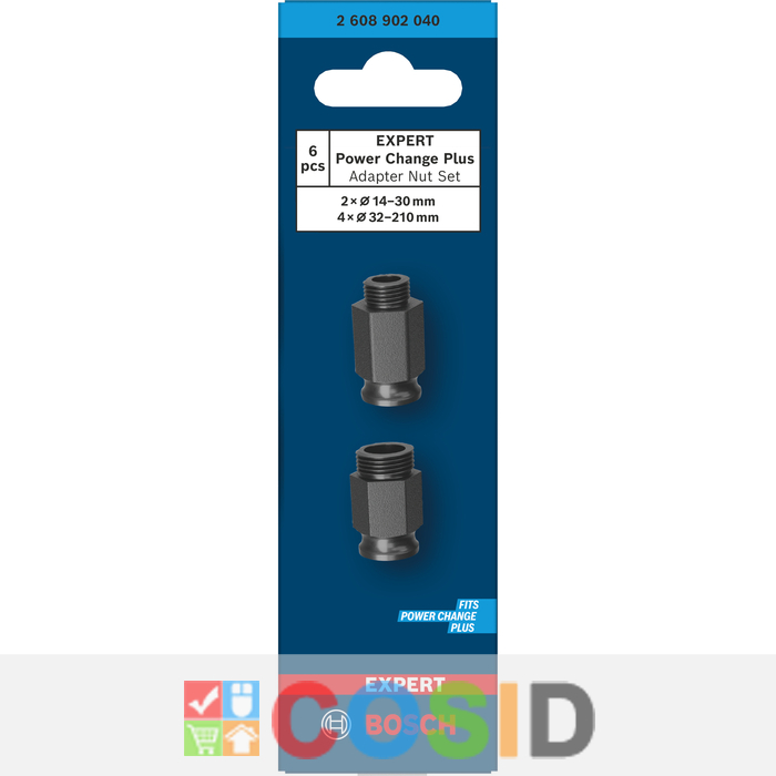 BOSCH Set de piulițe adaptoare EXPERT Power Change Plus, 2 piulițe adaptoare pentru HS 14-30 mm, 4 piulițe adaptoare pentru HS 32-210 mm