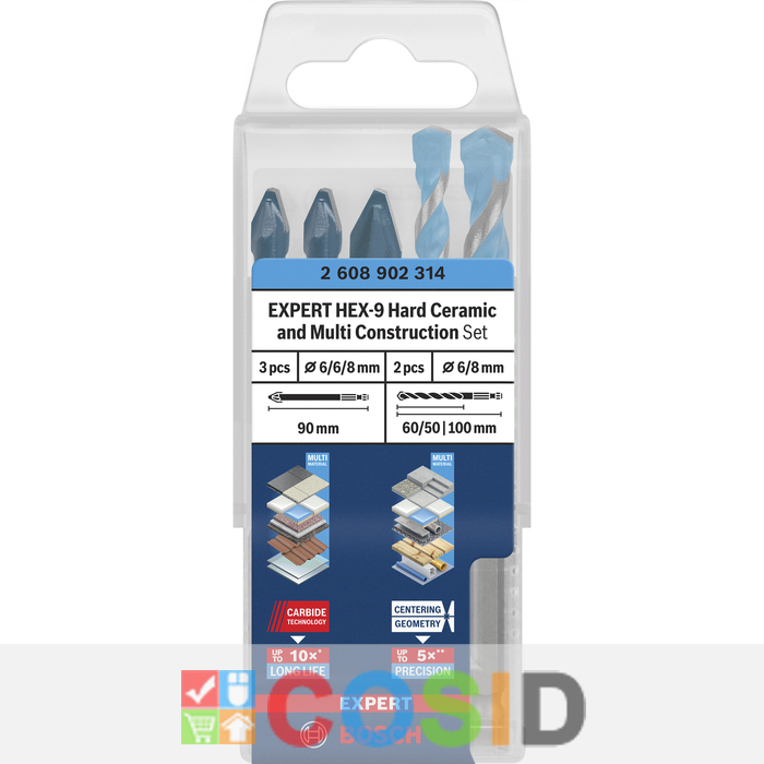 BOSCH Set EXPERT HEX-9 Hard Ceramic și HEX-9 Multi Construction, 5 buc.