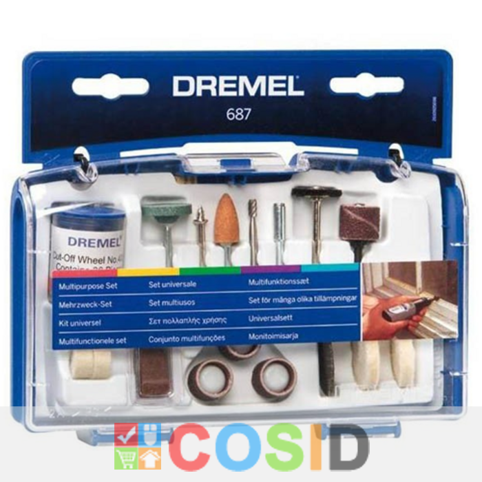 O selectie a celor mai bine vândute accesorii într-o singura cutie. Tava demontabila pentru accesorii si 3 divizoare ofera solutia perfecta pentru depozitare. Brosura de initiere Dremel explica accesoriile incluse .