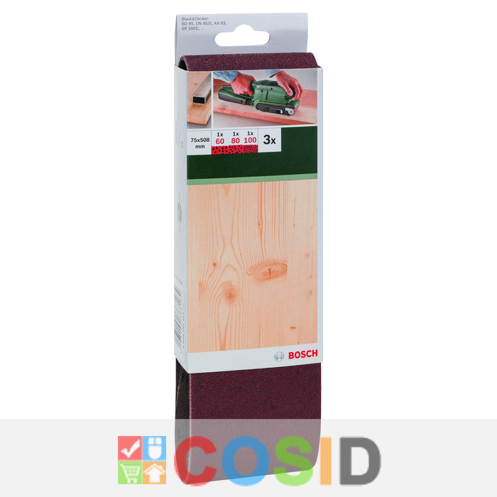 BOSCH SLIBEBÅNDSÆT 75X508MM R:W U/HUL 3 STK