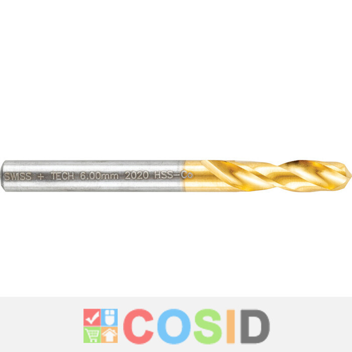 CROMWELL SwissTech. 2020, Stub Drill, 5.5mm, Cobalt High Speed Steel, TiN