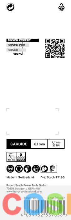 BOSCH T118AHM Set 3 panze EXPERT Stainless Steel (INOX) 83 mm